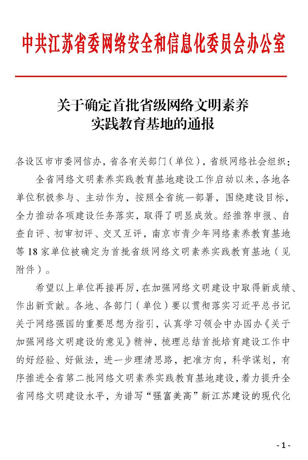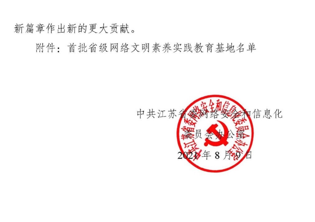 | “江苏省预防网络诈骗安全科普教育基地”获得批准为省级网络文明素养实践教育基地