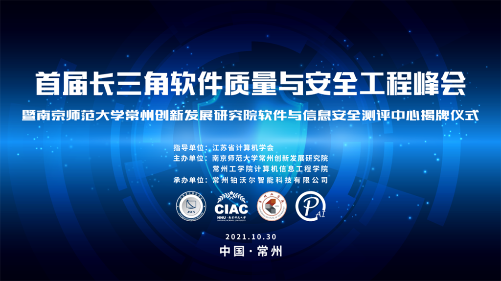 2021年10月30日,“首届长三角软件质量与安全工程峰会暨南京师范大学常州创新发展研究院软件与信息安全测评中心揭牌仪式”在南京师范大学常州创新发展研究院成功举行。本次峰会由江苏省计算机学会指导,由南京师范大学常州创新发展研究院、常州工学院计算机信息工程学院主办,常州铂沃尔智能科技有限公司承办。
