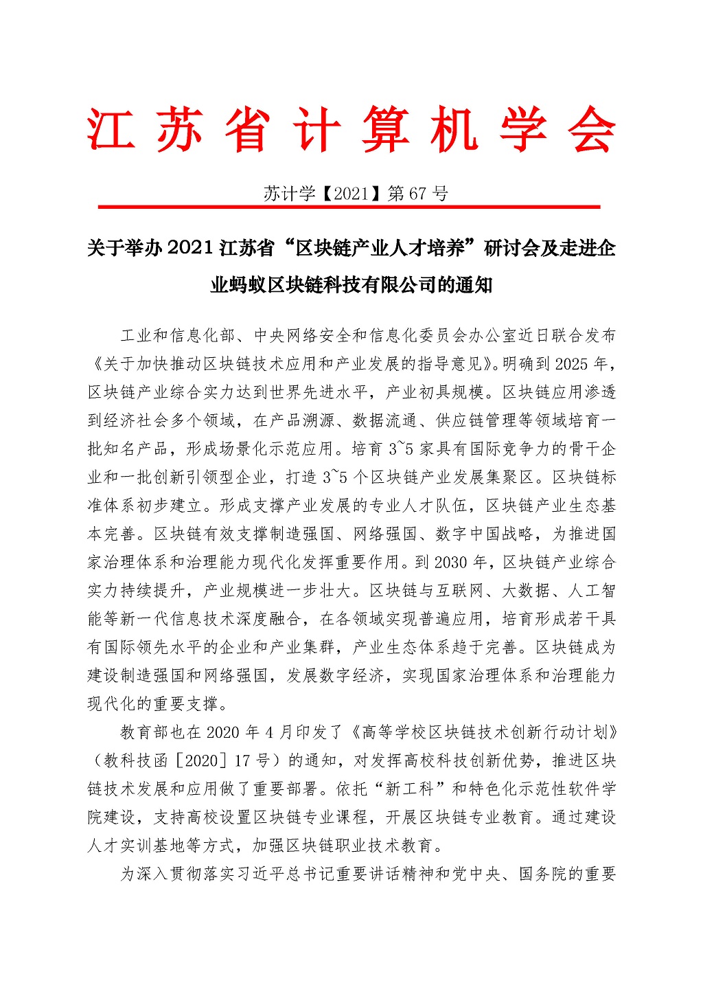 2021江苏省“区块链产业人才培养”研讨会及走进企业回执