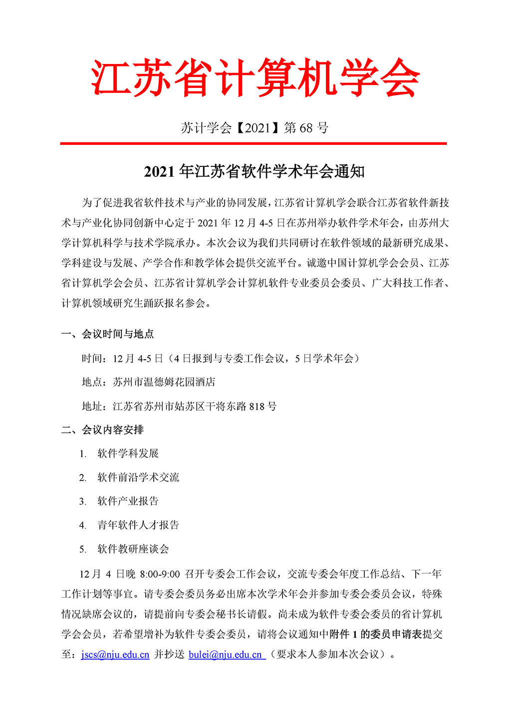 附件2:2021年江苏省计算机软件专委会学术年会参会回执表