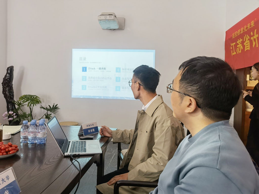 活动由计算机应用专委会常务副主任王永利教授主持,由省计算机学会常务理事杨建青同志致辞,指出当前高校信息化建设方向所面临的挑战和机遇,并对计算机应用专委会的发展给出建议和希望。活动的主要内容是由三家致力于信息化云服务的科技企业派出的代表对各自企业的信息化解决方案做出宣讲。首先,上海云轴信息科技有限公司的代表夏天以“ZStack——助力高校信息化建设”为主题,对公司自研的ZStack Cloud云平台、ZStack Mini 边缘计算一体机和ZStack CMP 多云管理平台做出介绍,结合云计算、大数据、人工智能等技术为高校以及科研机构提供在线教育、智慧高校、课题研究等多场景解决方案,降低教育服务的投入成本。