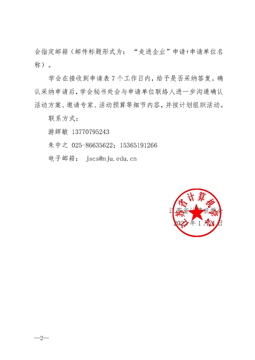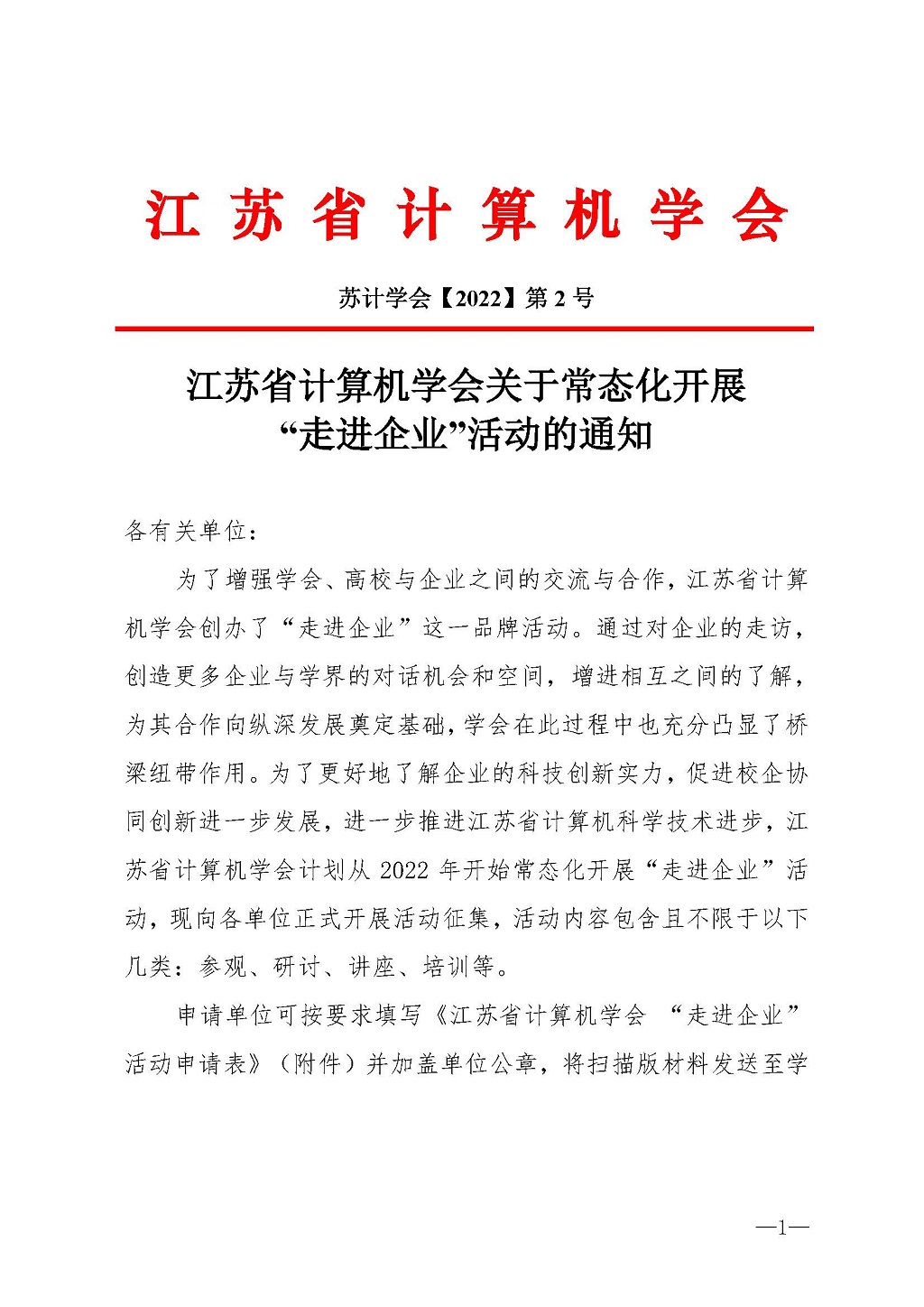 附件:江苏省计算机学会“走进企业”活动申请表