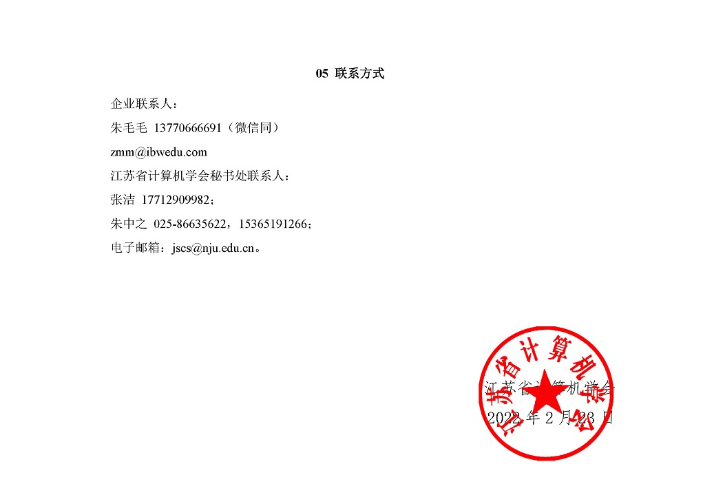 Copyright (c) 版权所有 江苏省计算机学会 南京网站建设公司 秘书处办公室 地址: 江苏省南京市仙林大道163号 邮编:210023 电话/传真:025-89680909 秘书处市内联络点 地址: 江苏省南京市汉口路22号 邮编:210093 电话/传真:025-86635622 电子邮箱:jscs@nju.edu.cn 网址:www.jscs.org.cn 技术支持:南京成旭通信息技术有限公司