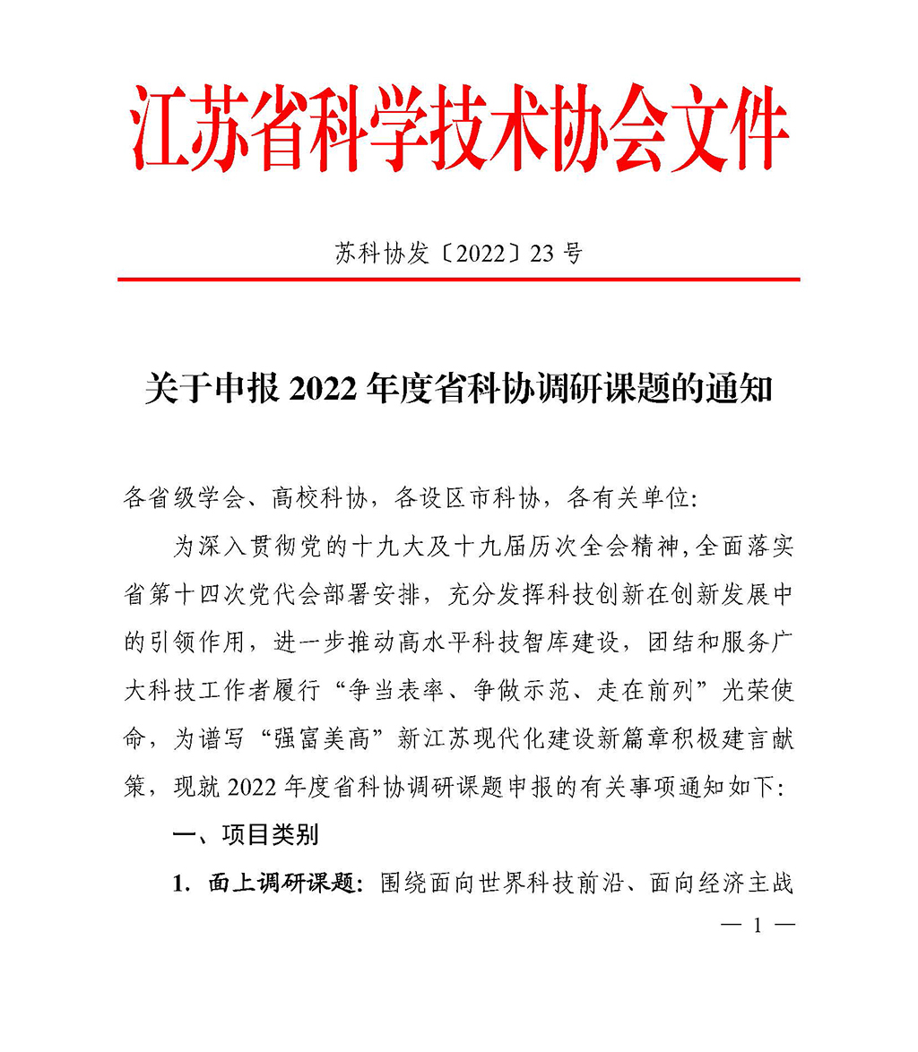 附件1:2022年度江苏省科协面上调研课题选题指南