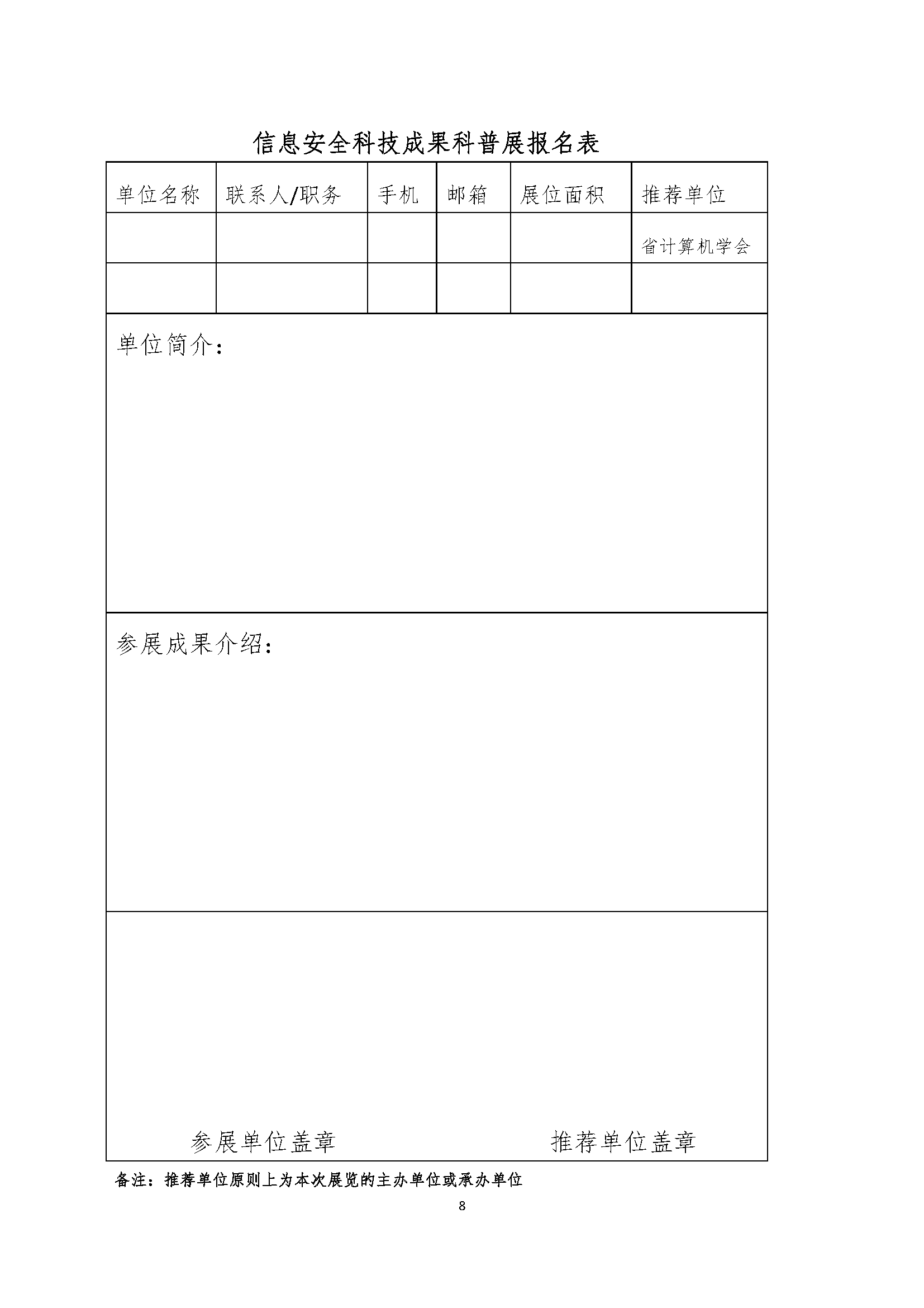 附件1:信息安全科技成果科普展报名表