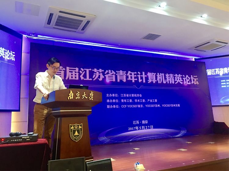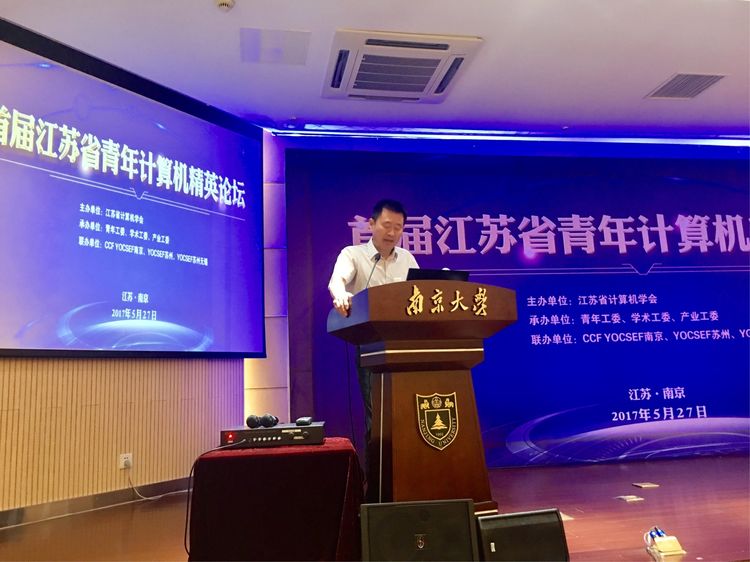 5月27日,为迎接首个全国科技工作者日的到来,在2017年全国科技活动周暨第二十九届江苏省科普宣传周即将画上句号之时,遵照江苏省科协开展“投身创新争先,融入两聚一高”主题活动的部署,江苏省计算机学会在南京大学仙林校区举办首届江苏省青年计算机精英论坛,号召全省产学研各界青年计算机科技工作者,发扬"创新创业创优,争先领先率先"的新时期江苏精神,投身创新创业大潮,为实现“两聚一高”新目标、建设“强富美高”新江苏建功立业。110余位代表出席为期一天的论坛。