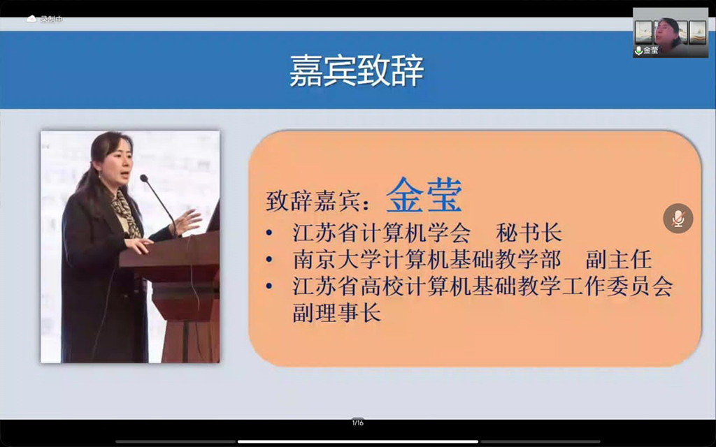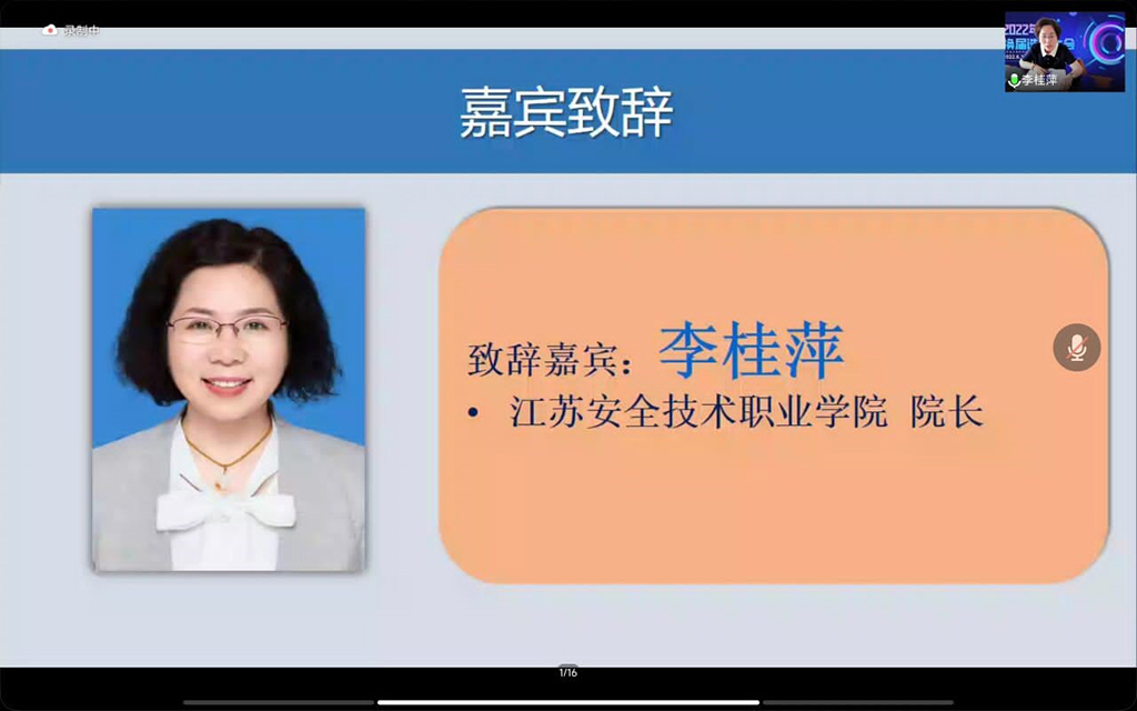 会议开幕式由江苏海事职业技术学院陈永副教授主持,江苏省计算机学会秘书长金莹教授、江苏安全技术职业学院院长李桂萍教授出席开幕式并致辞。