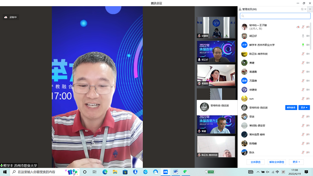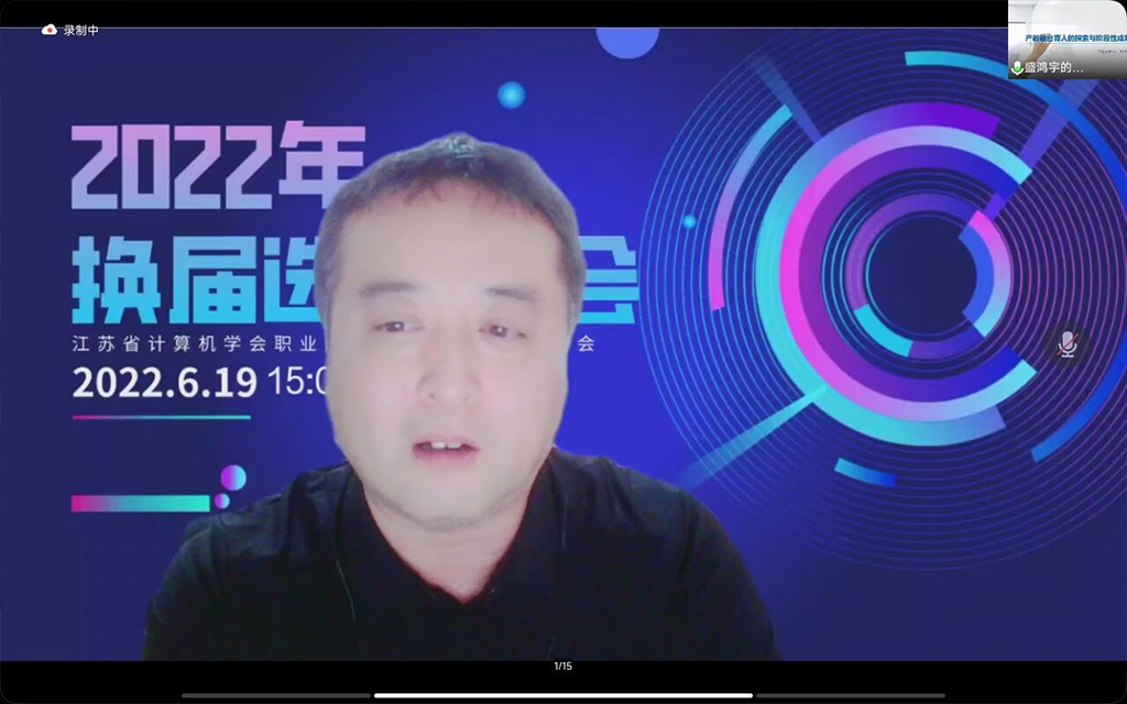 6月19 日下午,江苏省计算机学会职业院校产教融合专家委员会换届选举会议暨产教融合专题研讨会在线顺利召开,此次会议由江苏省计算机学会职业院校产教融合专家委员会主办、江苏安全技术职业学院承办、北京神州数码云科信息技术有限公司协办,来自省内高校专家以及企业领域100多名代表参加此次在线会议。