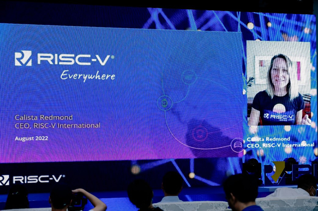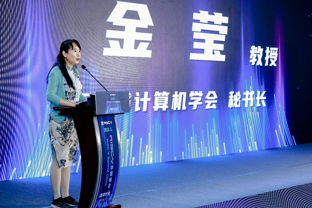 南京市工业与信息化局副局长唐永实、江苏省半导体行业协会专家委员会主任委员、东南大学首席教授时龙兴、江苏省计算机学会秘书长金莹莅临现场并致辞。RISC-V国际基金会CEO Calista Redmond 、中国开放指令生态(RISC-V)联盟秘书长包云岗在线致辞。