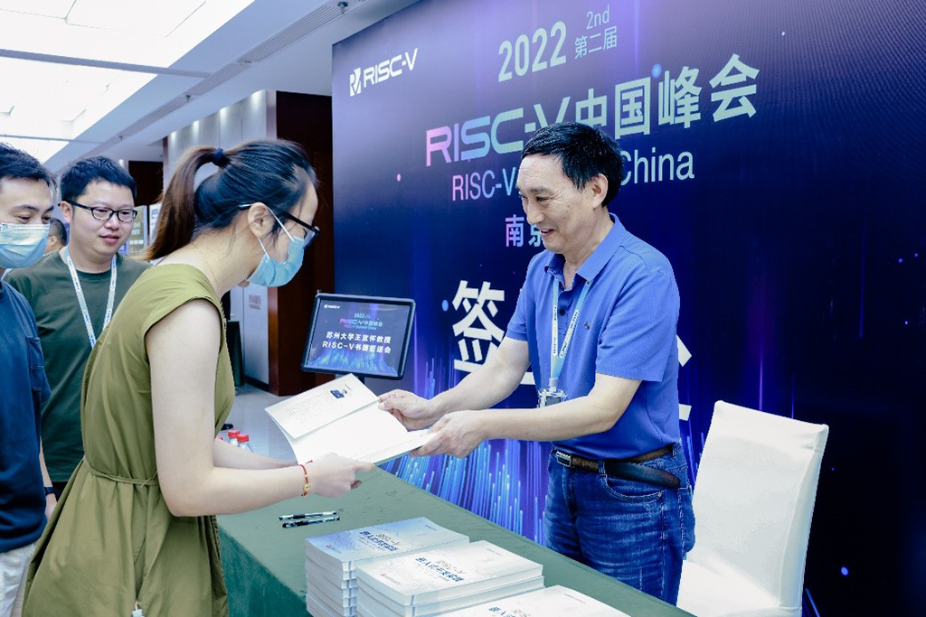 苏州大学王宜怀分享了基于RISC-V MCU构建的GEC生态系统。他将MCU硬件最小系统及面向具体应用的共性电路封装成一个整体,为用户提供了SOC级芯片可重用的硬件实体。他还按照硬件构件要求进行原理图绘制、文档撰写及硬件测试用例设计,提高了硬件设计的颗粒度,软件编程颗粒度和软硬件可移植性等性能。峰会期间,王宜怀教授还开展了《RISC-V嵌入式开发实践—基于CH32V307微控制器》书籍的签送活动。