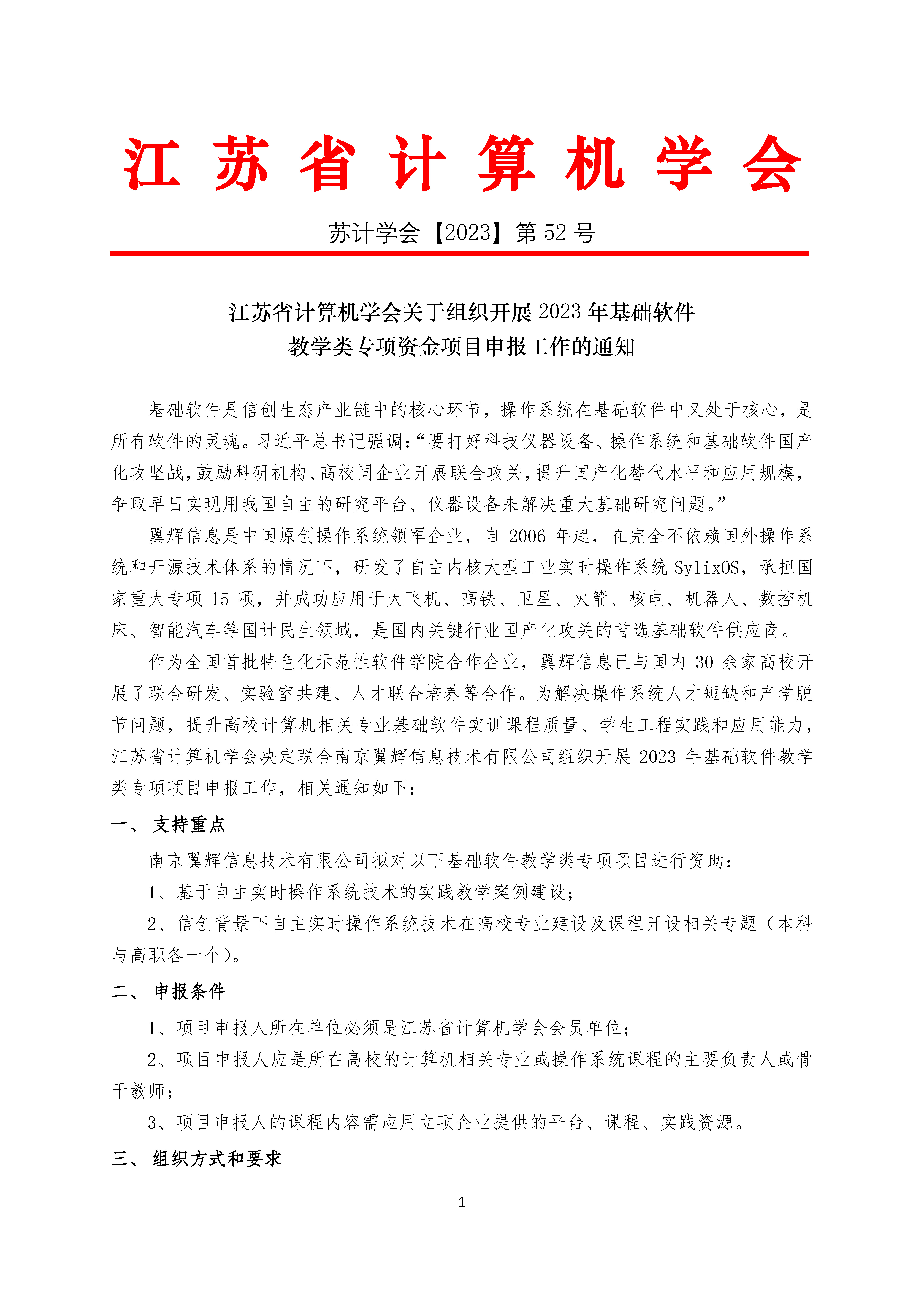 江苏省计算机学会关于组织开展2023年基础软件教学类专项资金项目申报工作的通知