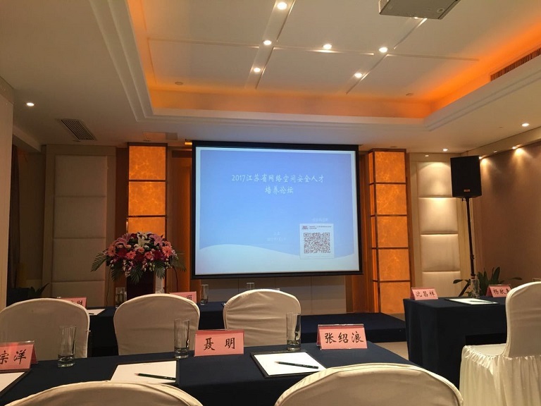 2017年1月5日,江苏省高等学校网络空间安全人才培养论坛在南京金汇大酒店全天举行,产学研各界70 人参加,论坛由江苏省计算机学会主办,北京易霖博信息技术有限公司承办。应邀来论坛演讲的知名专家有我国网络空间安全一级学科主要倡导者、中国工程院院士沈昌祥,中国保密协会会长杜虹,神州网云总裁李宗洋,华为企业网络产品线首席安全架构师钱晓斌,全军信息安全技术研究中心主任、解放军理工大学教授张涛等。江苏省计算机学会杨献春秘书长代表主办方致开幕词,省计算机学会信息安全专委会主任傅德胜和江苏省"网络与信息安全"科技传播首席专家、南京邮电大学教授杨庚分别担任上、下午论坛主持。省计算机学会教育工委主任陶先平、省计算机学会网络空间安全职业教育专委会主任聂明也出席了论坛。