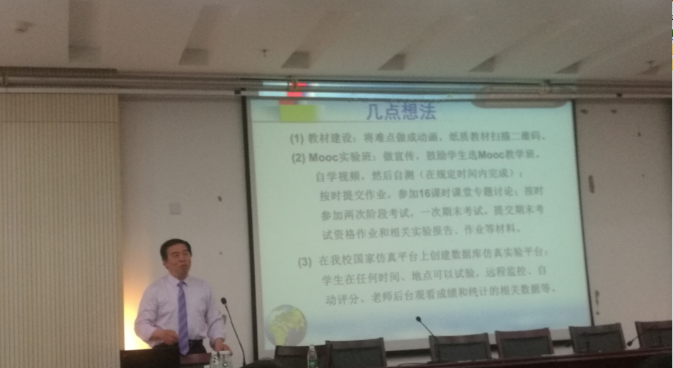三、下午的专题报告也同样精彩纷呈。首先是金陵科技学院软件学院执行院长邓建明教授做了题为《针对工程教育认证的软件工程专业建设情况简介》的报告,邓教授长期专注注软件工程专业的人才培养,并直接参与了工信部行业标准的制定,报告对培养方案、“产学三级驱动”的实践与创新能力培养模式、课程群建设学生编程能力培养、学生创新创业能力培养、教学质量保障体系建设、以及未来工作计划等进行了阐述。紧接着淮阴工学院计算机学院刘金岭教授做了题为《项目驱动与创新创业相结合的数据库课程建设与教学模式实践》的报告,刘教授主持的数据库原理及应用课程建设,获省成教精品课程及校教学成果一等奖,主编的《数据库系统应用教程》教材获省重点教材,三年间销量近20000册。刘教授重点讲述了三位一体的教学模式,并展现了教学成果。接下来叶晓江工程师用精彩实用地案例讲解了《如何学习大数据》,他独特的视角得到了与会老师的好评;最后是赞助单位,也是本次会议的协办单位南京绿萝智能科技有限公司,其创始人杨毅,做的题为《VR/AR人才培养》的报告,用大量地实例展示了此领域人才培养的重要性和迫切性,也对公司的成果做了展示。