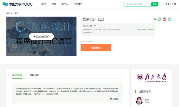 停课不停教、不停学——《C程序设计》免费直播课在爱课程和文泉课堂两个平台同时开放