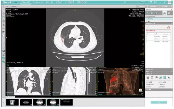 “火眼AI”是根据最新的新冠肺炎影像学诊断指南和专家共识,通过深入分析新冠肺炎的影像学征象,集新冠肺炎早期筛查、病灶快速检测、疗效评估和病情进展分析的综合解决方案。东软医疗智能医学影像云平台NeuMiva搭载的“火眼AI”系统,在疫情期间向全国的医疗机构免费开放使用。