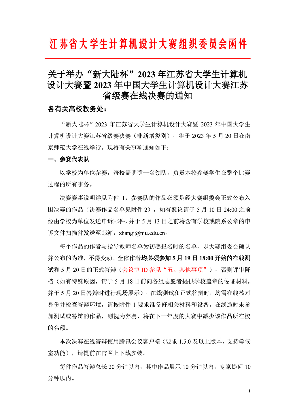 附件:2023年江苏省大学生计算机设计大赛决赛通知