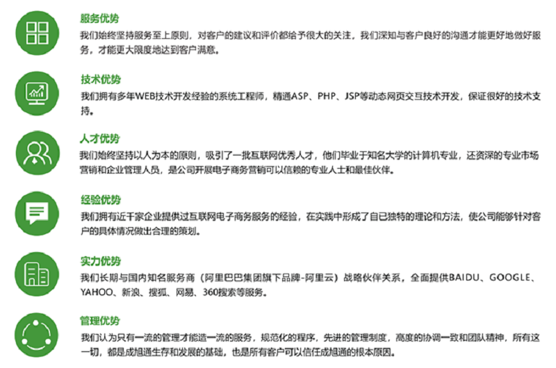 南京成旭通信息技术有限公司(简称:成旭通)成立于2006年9月8日,是南京地区服务比较完善的企业互联网与信息化服务单位。为了让企业互联网和信息化的全面发展,我们始终坚持“诚信为本,共同发展,互相共赢”;近年来,成旭通凭借其独特的服务模式,迅速得到政府部门,行政事业单位及广大企业用户的认可,我们为近千家中小企事业单位提供过互联网与企业信息化服务。