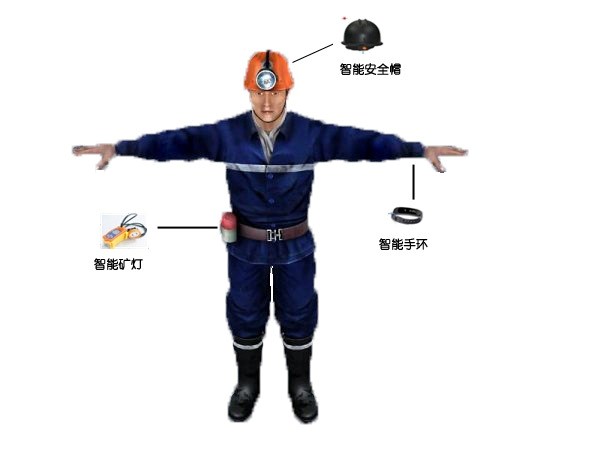 包括:可穿戴智能手环、智能矿灯、低功耗无线通信基站、低功耗定位基站、井下人行为状态监控系统。
