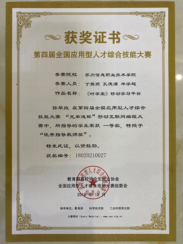同时本院教师也积极探索高职教育改革,荣获教育部主办的全国高校(高职高专)微课教学比赛三等奖1项,江苏省微课教学比赛一等奖5项,二等奖2项,江苏省信息化教学大赛一等奖4项,二等奖3项,三等奖1项。同时还荣获江苏省教学成果二等奖1项,苏州市教学成果二等奖1项,苏州市吴江区科学进步奖二等奖1项。