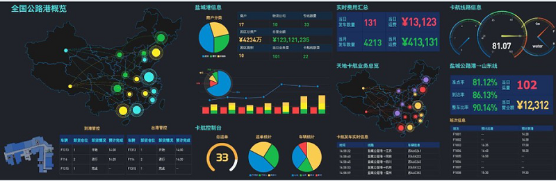 帆软也为企业提供智慧数字大屏解决方案,通过帆软的数据分析产品,用户可以构建强大、全面的“管理驾驶舱”,可以将企业的数据管理信息完美地投放在任何屏幕,比如交易大厅、管控中心、生产车间、展览中心等地的LED/LCD大屏上,可以实现完美的自适应效果。对于大屏展示的信息,比如股价,双11类活动实时交易状况,支持监控刷新,钻取联动,动态交互。也提供接近50种图表类型和延伸的100多种图表样式,以及各类动态可视化特效,支持DIY各种酷炫大屏样式。